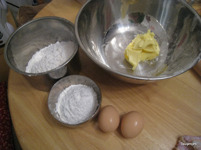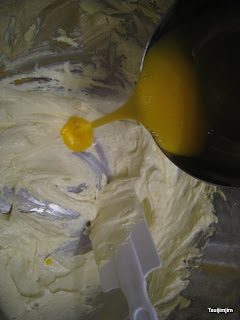 3. | 牛油打起, 糖逐少加入 。 |