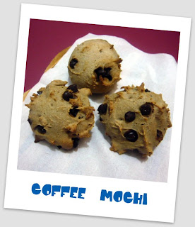 麻糬粉和咖啡粉篩好, 加入蛋漿攪拌成麵團
