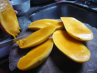 我地好貪心, 真係落左好多芒果! 我諗份量係 60-70%芒果, 因為3大杯已經落左3個芒果