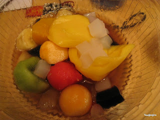 入面有好多生果, 有西瓜,奇異果,哈蜜瓜,蜜桃,大樹菠蘿,菠蘿,椰果,涼粉非常多料~ 味道唔錯~ 但又未講到勁好食ge 效果~ 我諗應該佢都係出名份量~