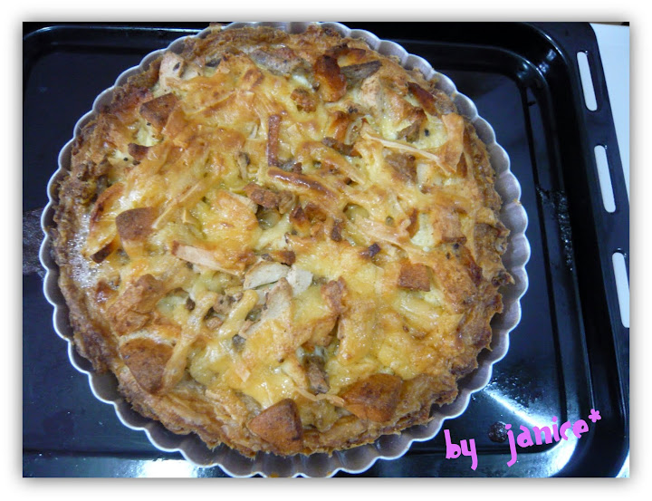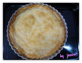 慢慢倒入蛋漿, 入 200 度爐, 烤 20 分鐘至金黃色