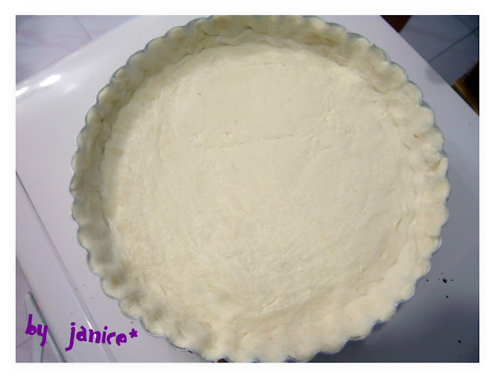 千層酥皮平均分佈地壓在 6" 分離模上, 用叉子吉上小洞後入 180 度烤 15 分鐘, 待用