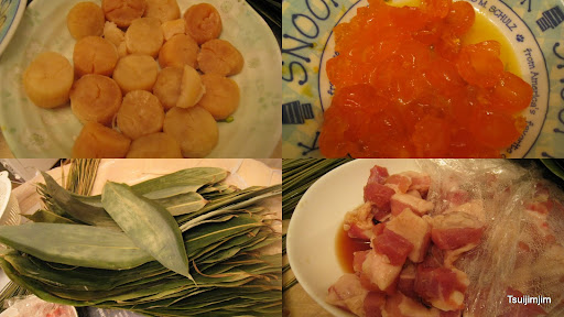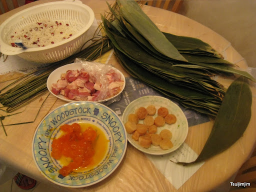 所有ge 材料: 有蕉葉,水草,糯米,花生,紅豆,綠弄,咸蛋黃,同埋少肥瘦肉 :)