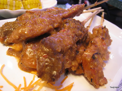 分別食左, 雞,牛,豬,沙嗲汁味道唔錯, 串燒okay !!