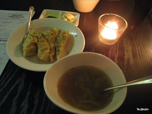 而洋蔥包又同平日ge 唔同~ 另外佢有一碟sauce 比你點包ge~一邊係黑色, 一邊係d 好creamy ge sauce ~ 2樣食都唔知係咩~ 但聽到waitress 介紹好似有隻係松露菌黎ge :p
