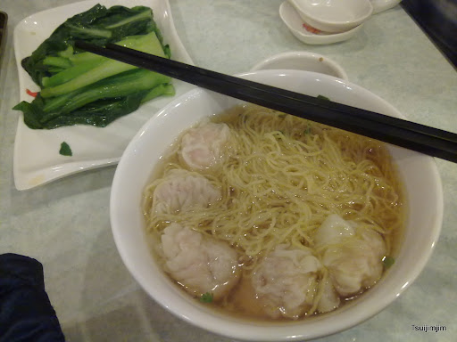雲吞麵比我想像中好食(因為開頭以為主要sell 裝修only), 一碗麵有5大粒雲吞, 而且雲吞好夠料, 入面有粒幾大ge大蝦:p